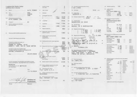 Certificat de Conformité Européen Alfa Romeo - COC Alfa Romeo