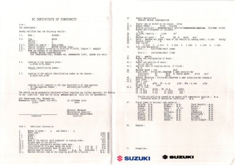 Certificat de conformité Suzuki : Commander sur Euro Conformité France
